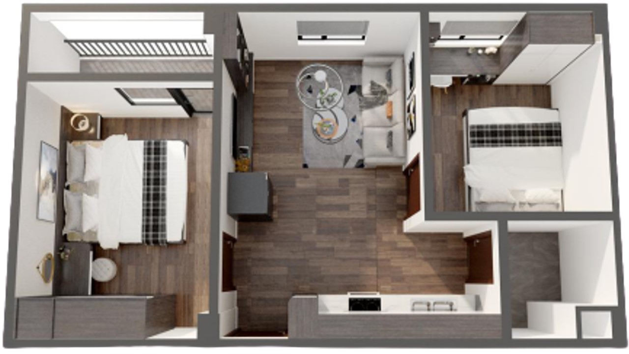 II. Cách bố trí căn hộ 45m2 phòng ngủ