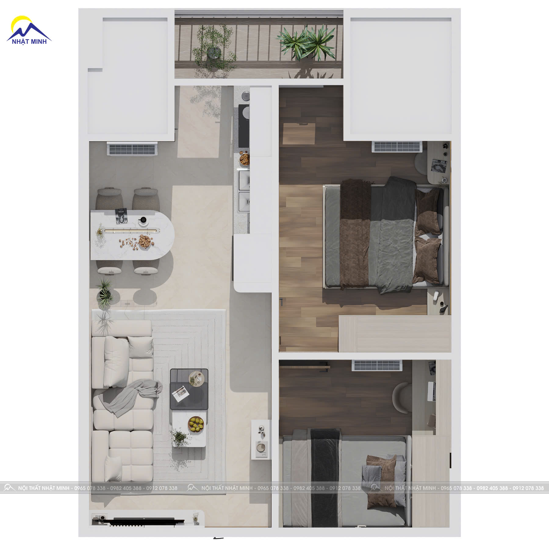 THIẾT KẾ CĂN HỘ 2 NGỦ CHUNG CƯ MÔI TRƯỜNG XANH – TỪ SƠN – BẮC NINH
